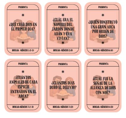 Incluye muchas tarjetitas coloridas, y en cada una hay una pregunta curiosa. ¡Para encontrar la respuesta, los niños deben buscarla en la Biblia!