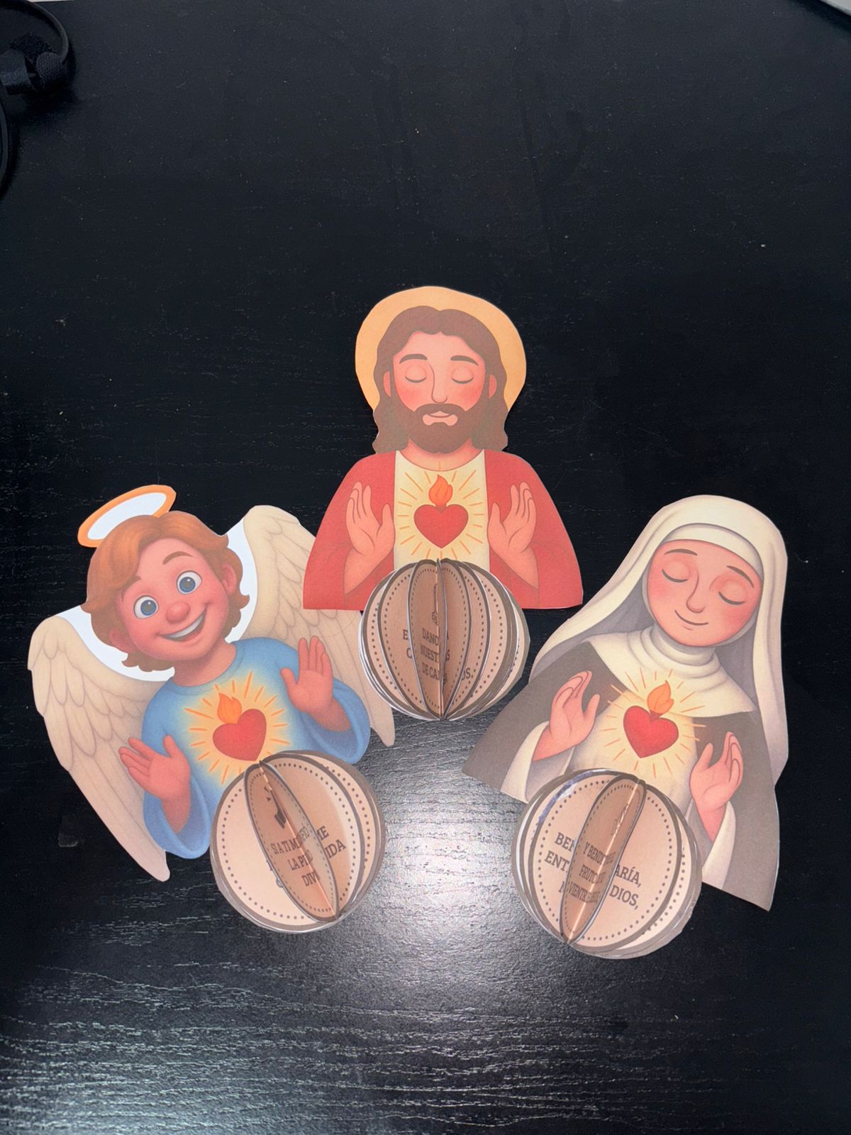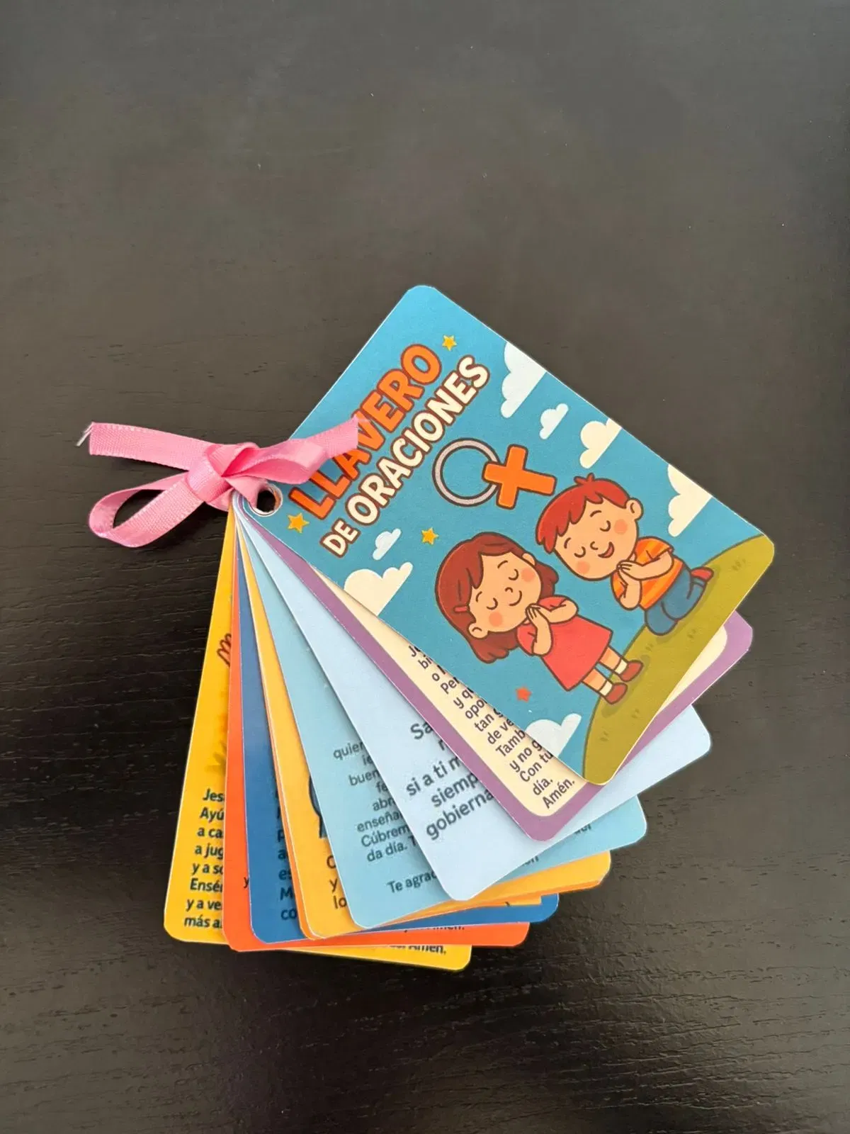 Un llavero especial que lleva oraciones diarias y breves invocaciones, perfecto para acompañarte a lo largo del día.