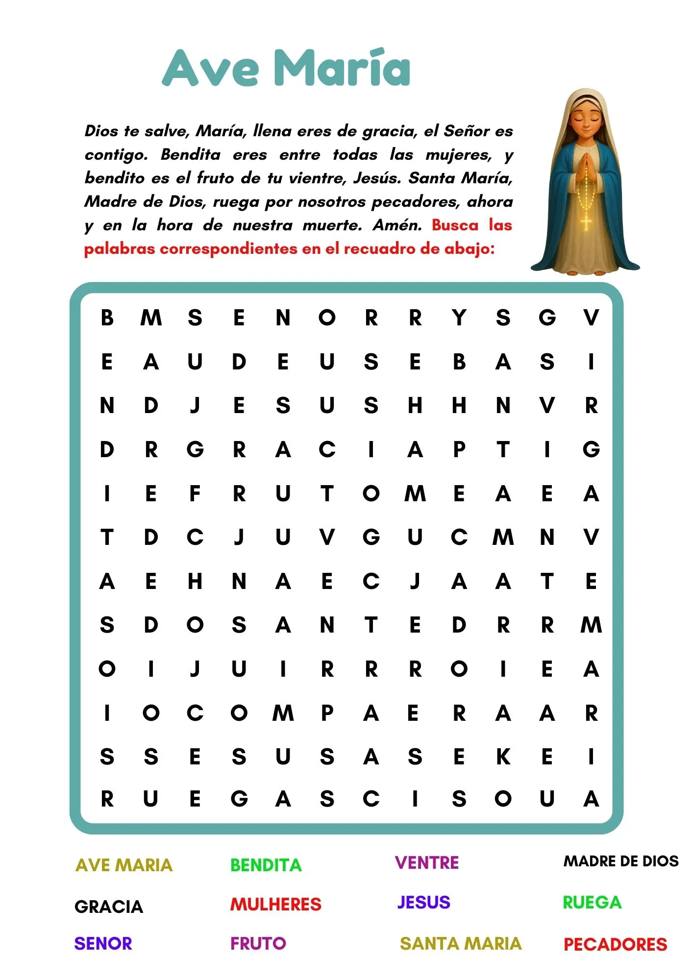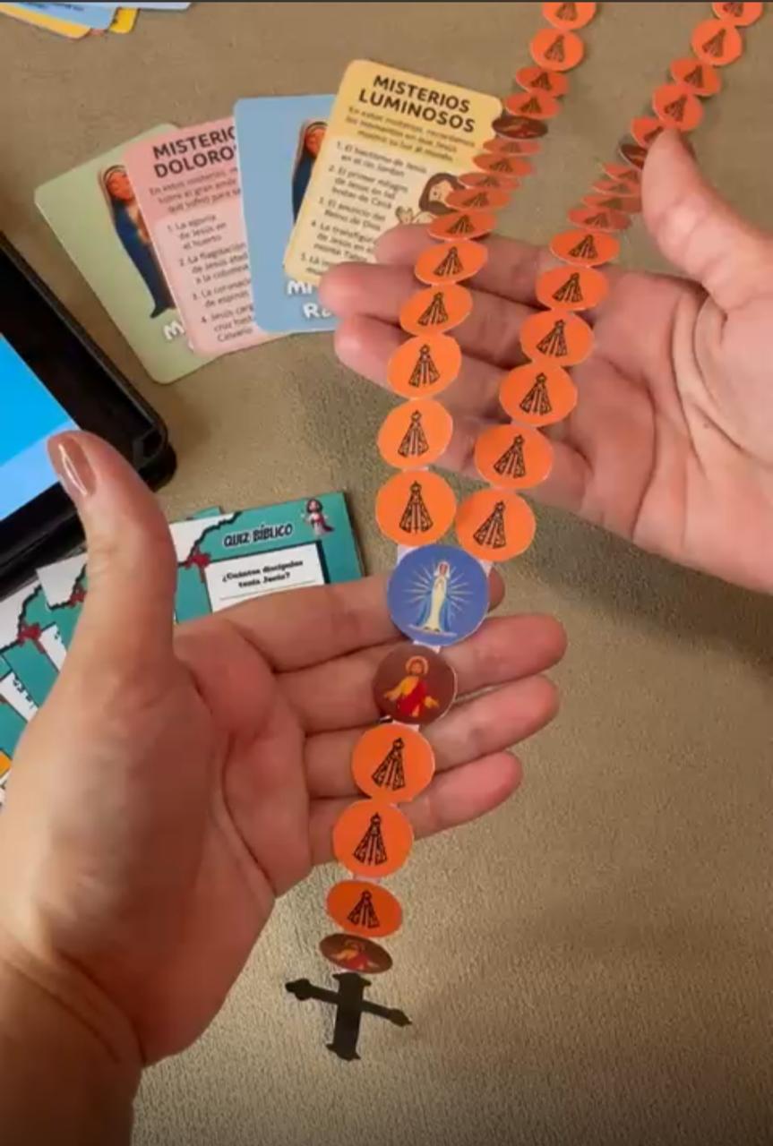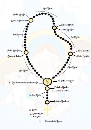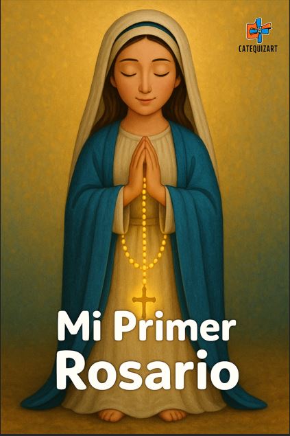 Una guía cariñosa y didáctica para enseñar a los niños a rezar el Rosario, con ilustraciones, explicaciones sencillas.